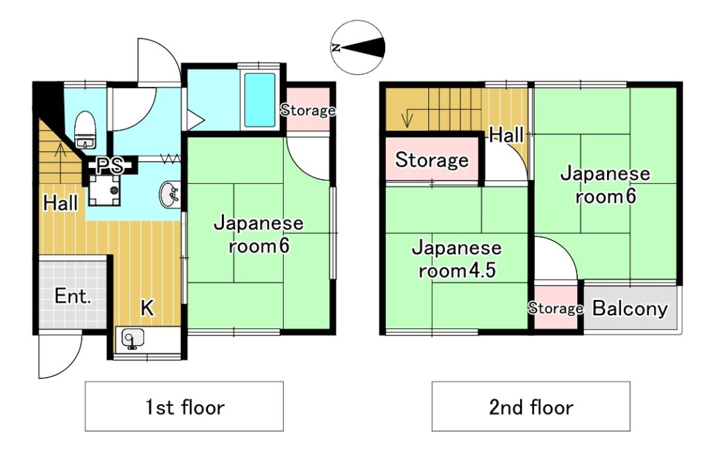 建物面積:1階25.47㎡、2階23.33㎡、延床48.80㎡